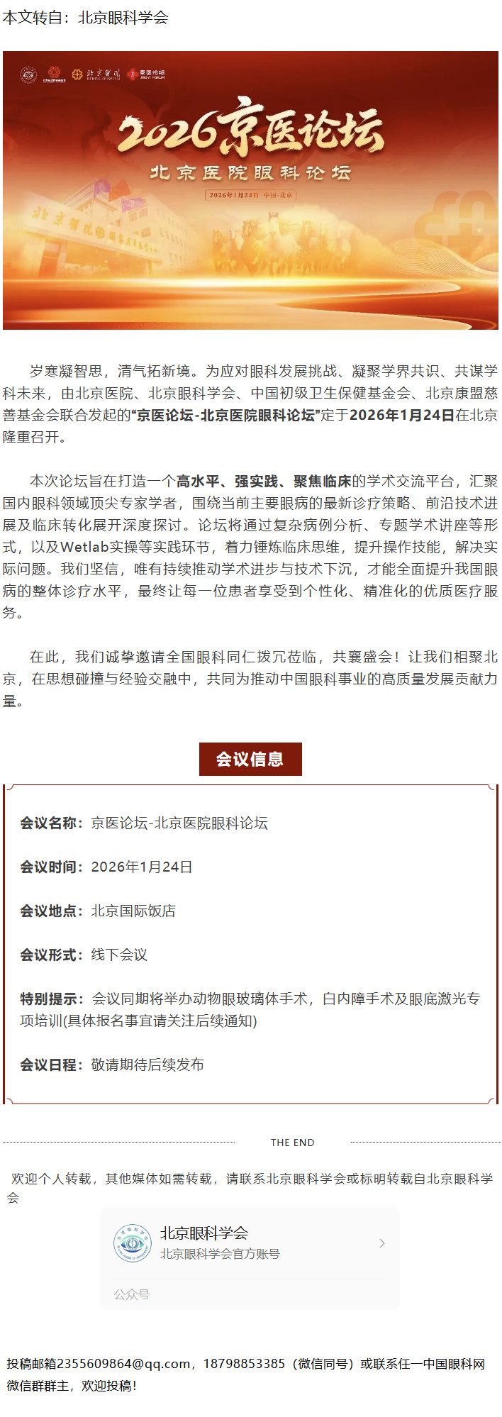 新闻中心 您的当前位置:首页 > 新闻中心 > 1.24 北京丨2026京医 1.24 北京丨2026京医论坛—北京医院眼科论坛 第一轮通知---2026.1.5 发布时间:2026-01-05 来源: 作者: