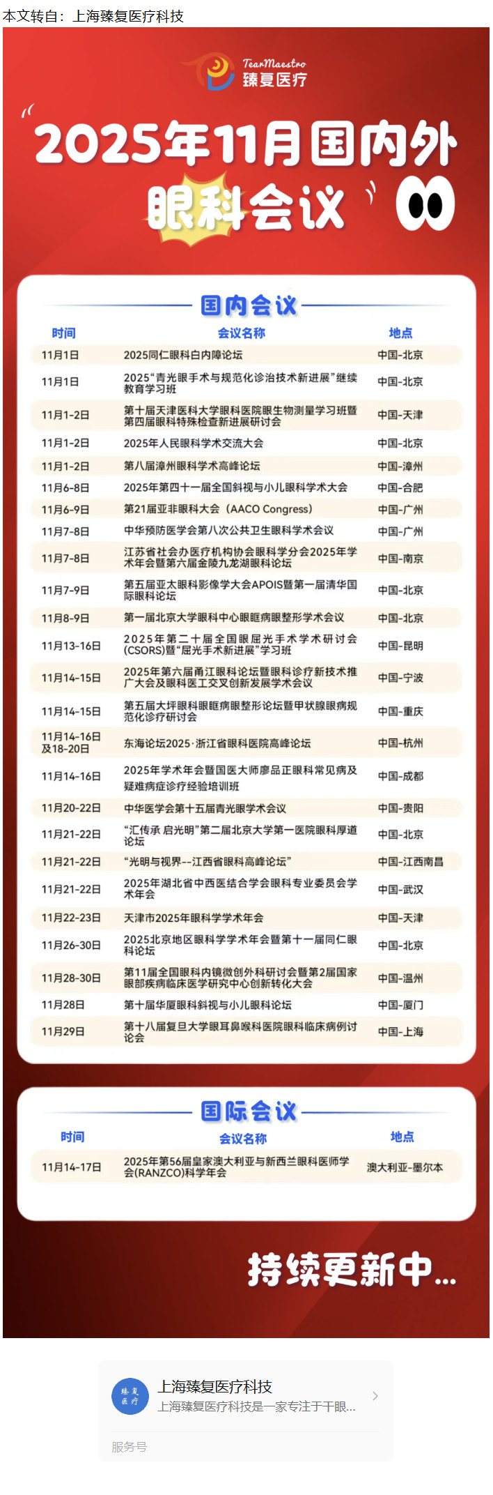 建议收藏!2025年11月国内外眼科会议汇总---2025.11.10 发布时间:2025-11-10 来源: 作者: