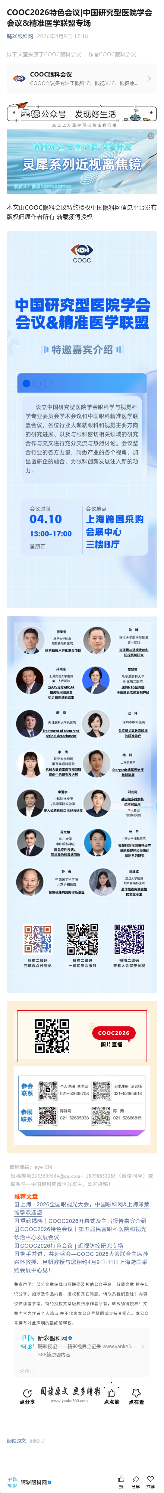 新闻中心 您的当前位置:首页 > 新闻中心 > COOC2026特色会议|中 COOC2026特色会议|中国研究型医院学会会议&精准医学联盟专场-----2026-4-9 发布时间:2026-04-09 来源: 作者: