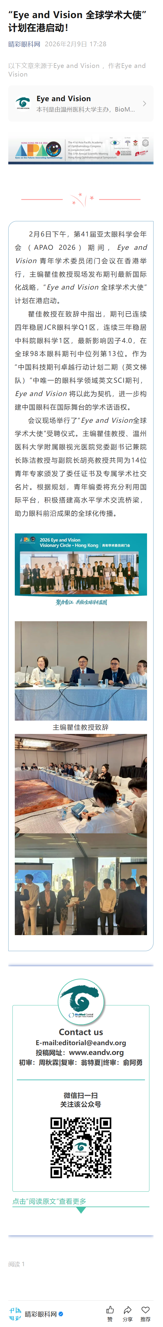 新闻中心 您的当前位置:首页 > 新闻中心 > “Eye and Vision 全 “Eye and Vision 全球学术大使”计划在港启动!------------2026-2-9 发布时间:2026-02-09 来源: 作者:
