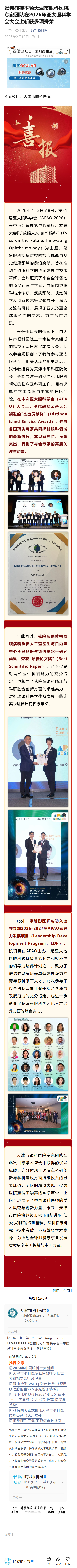 新闻中心 您的当前位置:首页 > 新闻中心 > 张伟教授率领天津市眼 张伟教授率领天津市眼科医院专家团队在2026年亚太眼科学会大会上斩获多项殊荣------2026-2-10 发布时间:2026-02-10 来源: 作者: