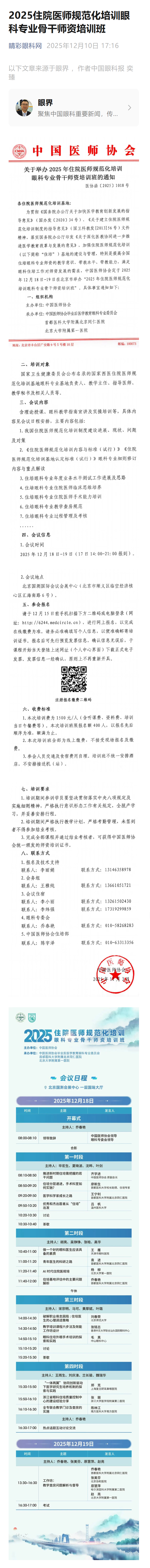 新闻中心 您的当前位置:首页 > 新闻中心 > 2025住院医师规范化培 2025住院医师规范化培训眼科专业骨干师资培训班-------2025-12-10 发布时间:2025-12-10 来源: 作者: