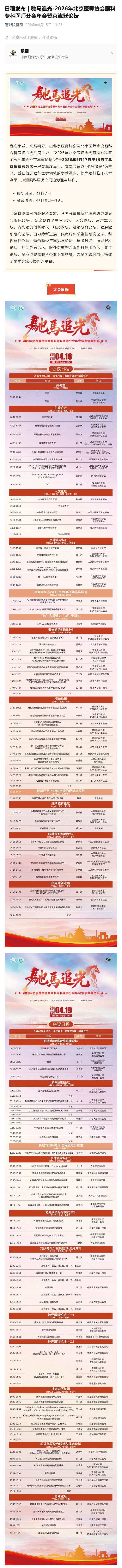 新闻中心 您的当前位置:首页 > 新闻中心 > 日程发布 | 驰马追光- 日程发布 | 驰马追光-2026年北京医师协会眼科专科医师分会年会暨京津冀论坛-----2026-4-15 发布时间:2026-04-15 来源: 作者: