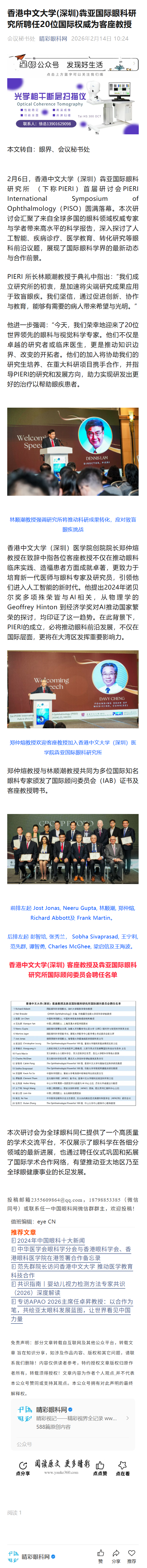 新闻中心 您的当前位置:首页 > 新闻中心 > 香港中文大学(深圳)犇 香港中文大学(深圳)犇亚国际眼科研究所聘任20位国际权威为客座教授------2026-2-14 发布时间:2026-02-14 来源: 作者: