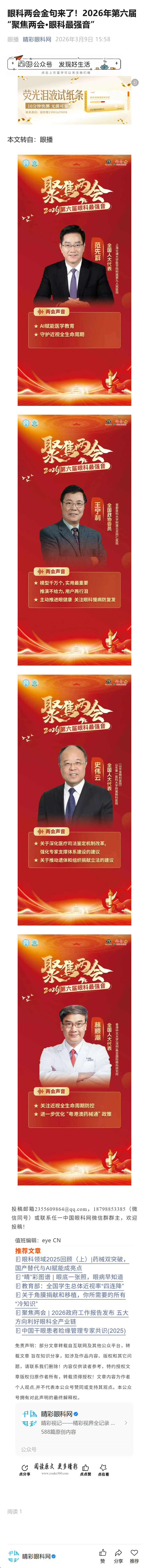 新闻中心 您的当前位置:首页 > 新闻中心 > 眼科两会金句来了!20 眼科两会金句来了!2026年第六届“聚焦两会·眼科最强音”-----2026-3-9 发布时间:2026-03-09 来源: 作者: