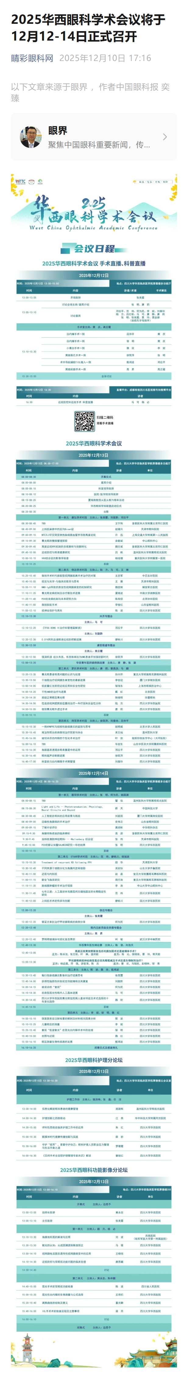 新闻中心 您的当前位置:首页 > 新闻中心 > 2025华西眼科学术会议 2025华西眼科学术会议将于12月12-14日正式召开---------2025-12-10 发布时间:2025-12-10 来源: 作者: