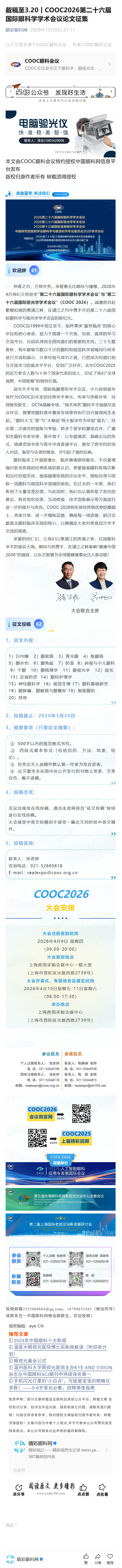 新闻中心 您的当前位置:首页 > 新闻中心 > 截稿至3.20丨COOC2026 截稿至3.20丨COOC2026第二十六届国际眼科学学术会议论文征集-------2026-1-20 发布时间:2026-01-20 来源: 作者: