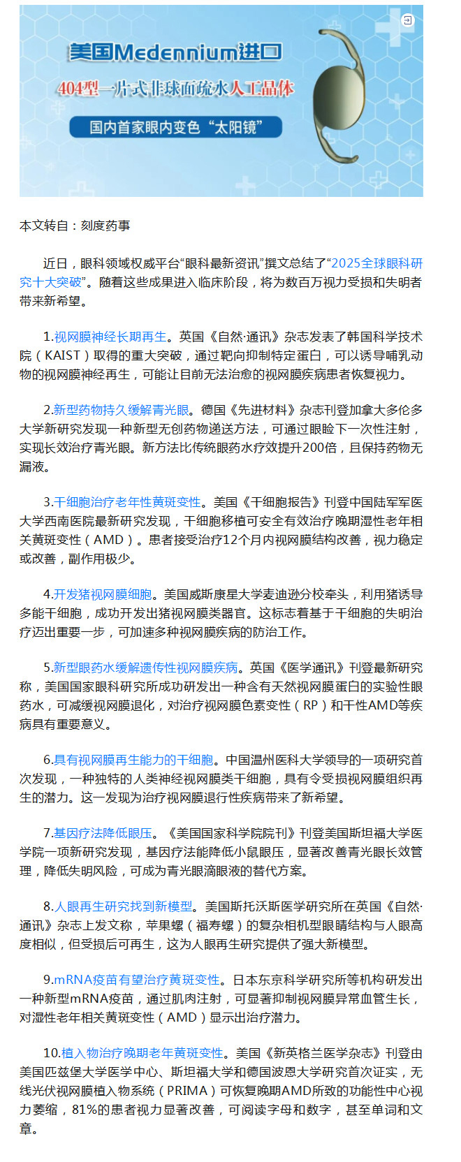 全球眼科十大突破--2026-01-19 发布时间:2026-01-19 来源: 作者: