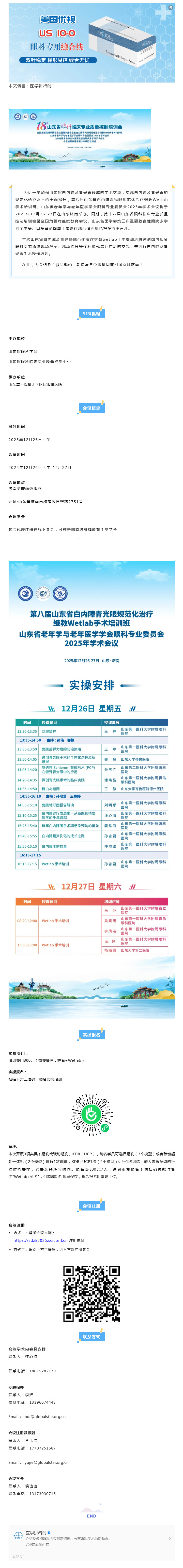 12.26-27济南丨第八届山东省白内障、青光眼规范化治疗继教Wetlab手术培训班【诚邀报名】---2025-12-18 发布时间:2025-12-18 来源: 作者: