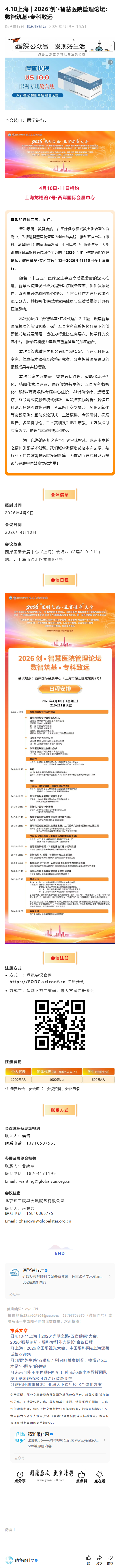 新闻中心 您的当前位置:首页 > 新闻中心 > 4.10上海 | 2026‘创 4.10上海 | 2026‘创’•智慧医院管理论坛:数智筑基•专科致远----2026-4-9 发布时间:2026-04-09 来源: 作者: