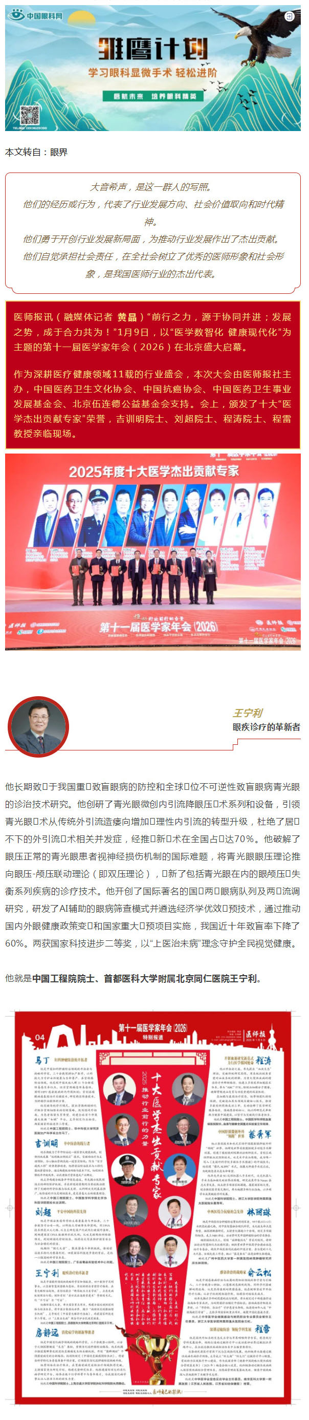 王宁利院士入选中国2025年度 “十大医学杰出贡献专家”--2026-01-12 发布时间:2026-01-12 来源: 作者: