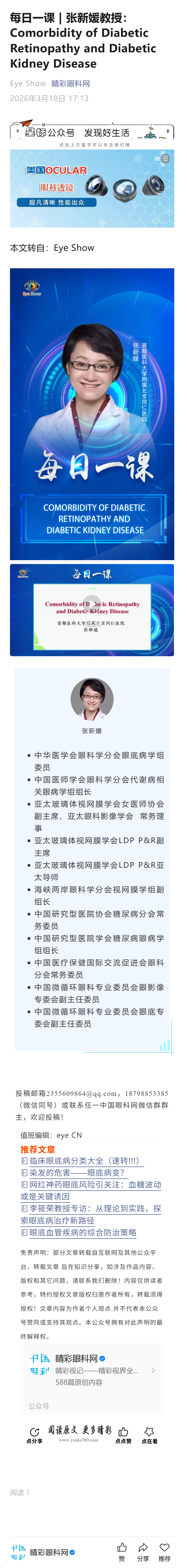 新闻中心 您的当前位置:首页 > 新闻中心 > 每日一课 | 张新媛教 每日一课 | 张新媛教授:Comorbidity of Diabetic Retinopathy and Diabetic Kidney Disease 发布时间:2026-03-18 来源: 作者: