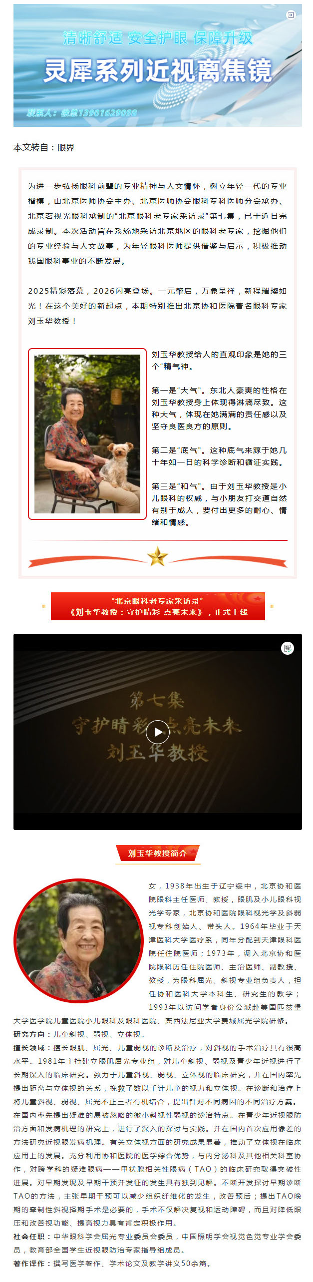 北京协和医院眼科刘玉华教授:守护睛彩 点亮儿童未来--2026-01-05 发布时间:2026-01-05 来源: 作者: